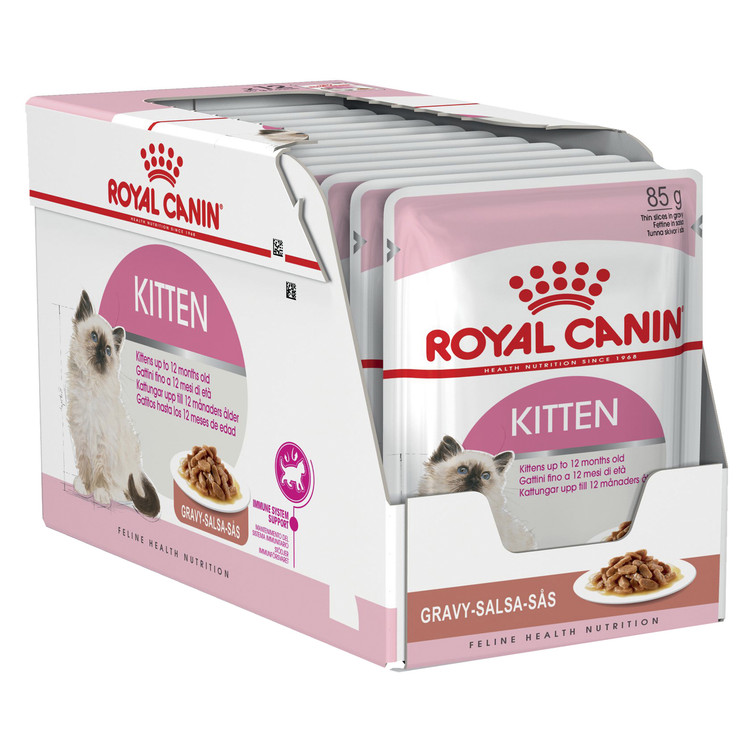 غذای پوچ بچه گربه رویال کنین-Royal Canin Kitten Gravy Pouch-غذای پوچ بچه گربه Kitten Gravy کیتن گریوی رویال کنین غذایی کامل برای بچه گربه ها از سن 4 تا 12 ماهگی به صورت تکه های کوچک در سس مخصوص است.شروع خوب زندگی برای بچه گربه ها با یک رژیم غذایی خوب انجام می شود. در مراحل حساس رشدی و سایر مراحل زندگی، با تامین مناسب مواد مغذی مورد نیاز بدن، رشد و نمو به درستی انجام خواهد شد.از شیر گرفتن بچه گربه ها می تواند دشوار باشد. به ویژه اگر غذایی که برای آنها انتخاب می شود را دوست نداشته باشند و حاوی مواد غذایی مورد نیاز بدن آنها نباشد. به همین دلیل، کمپانی رویال کنین محصولی را تولید کرده که طعم و عطری مطابق با غریزه بچه گربه ها دارد. همچنین حاوی میزان مناسبی از مواد مغذی است.غذا دادان به گربه ها با غذایی مطابق با ذائقه و غریزه آنها که طعم، بافت و بویی مناسب داشته باشد، موجب پذیرفته شدن آن غذا در طولانی مدت توسط گربه ها خواهد شد. غذای پوچ کیتن رویال کنین علاوه بر دارا بودن این ویژگی ها، حاوی انواع مواد مغذی مورد نیاز بدن بچه گربه هاست و به خوبی می تواند انرژی مورد نیاز آنها را تامین کند. همچنین از سلامت عمومی بدن و استحکام استخوان ها محافظت می کند.در مرحله دوم رشدی گربه ها که از سن 4 ماهگی تا 12 ماهگی است، سیستم ایمنی بدن آنها هنوز به صورت کامل شکل نگرفته است. پوچ کیتن رویال کنین با ترکیبی از انواع آنتی اکسیدان ها، ویتامین ای، ویتامین سی، تورین و لوتئین به تقویت سیستم ایمنی آنها کمک می کند.طراحی این غذای پوچ به شکل خورشت است و به صورتی تولید شده که برداشتن و جویدن آن برای بچه گربه ها به راحتی انجام شود. همچنین برای گربه های مادر نیز می توانید از آن استفاده نمایید.
