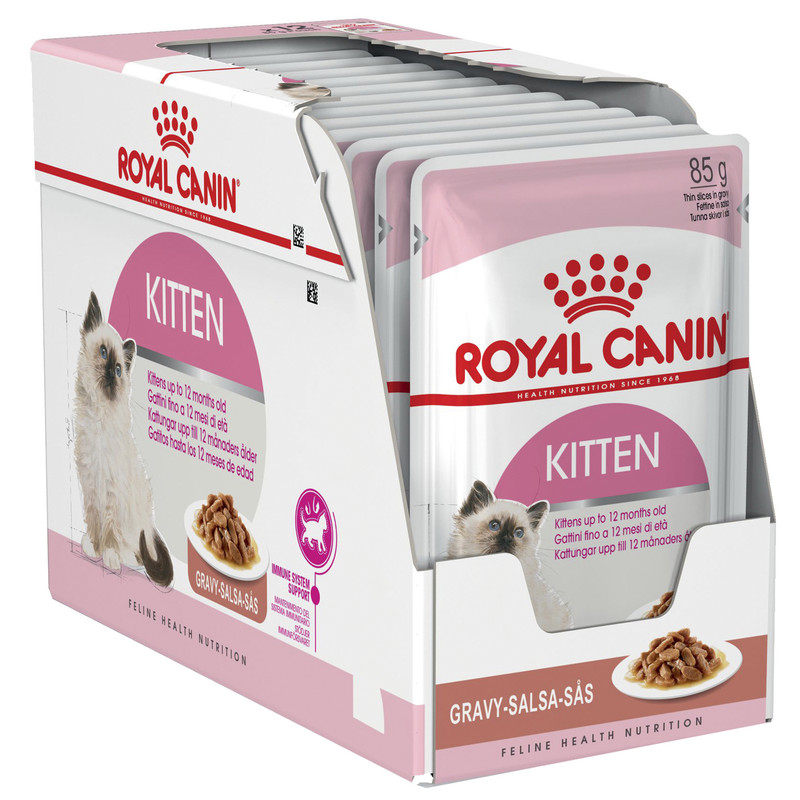 غذای پوچ بچه گربه رویال کنین-Royal Canin Kitten Gravy Pouch-غذای پوچ بچه گربه Kitten Gravy کیتن گریوی رویال کنین غذایی کامل برای بچه گربه ها از سن 4 تا 12 ماهگی به صورت تکه های کوچک در سس مخصوص است.شروع خوب زندگی برای بچه گربه ها با یک رژیم غذایی خوب انجام می شود. در مراحل حساس رشدی و سایر مراحل زندگی، با تامین مناسب مواد مغذی مورد نیاز بدن، رشد و نمو به درستی انجام خواهد شد.از شیر گرفتن بچه گربه ها می تواند دشوار باشد. به ویژه اگر غذایی که برای آنها انتخاب می شود را دوست نداشته باشند و حاوی مواد غذایی مورد نیاز بدن آنها نباشد. به همین دلیل، کمپانی رویال کنین محصولی را تولید کرده که طعم و عطری مطابق با غریزه بچه گربه ها دارد. همچنین حاوی میزان مناسبی از مواد مغذی است.غذا دادان به گربه ها با غذایی مطابق با ذائقه و غریزه آنها که طعم، بافت و بویی مناسب داشته باشد، موجب پذیرفته شدن آن غذا در طولانی مدت توسط گربه ها خواهد شد. غذای پوچ کیتن رویال کنین علاوه بر دارا بودن این ویژگی ها، حاوی انواع مواد مغذی مورد نیاز بدن بچه گربه هاست و به خوبی می تواند انرژی مورد نیاز آنها را تامین کند. همچنین از سلامت عمومی بدن و استحکام استخوان ها محافظت می کند.در مرحله دوم رشدی گربه ها که از سن 4 ماهگی تا 12 ماهگی است، سیستم ایمنی بدن آنها هنوز به صورت کامل شکل نگرفته است. پوچ کیتن رویال کنین با ترکیبی از انواع آنتی اکسیدان ها، ویتامین ای، ویتامین سی، تورین و لوتئین به تقویت سیستم ایمنی آنها کمک می کند.طراحی این غذای پوچ به شکل خورشت است و به صورتی تولید شده که برداشتن و جویدن آن برای بچه گربه ها به راحتی انجام شود. همچنین برای گربه های مادر نیز می توانید از آن استفاده نمایید.